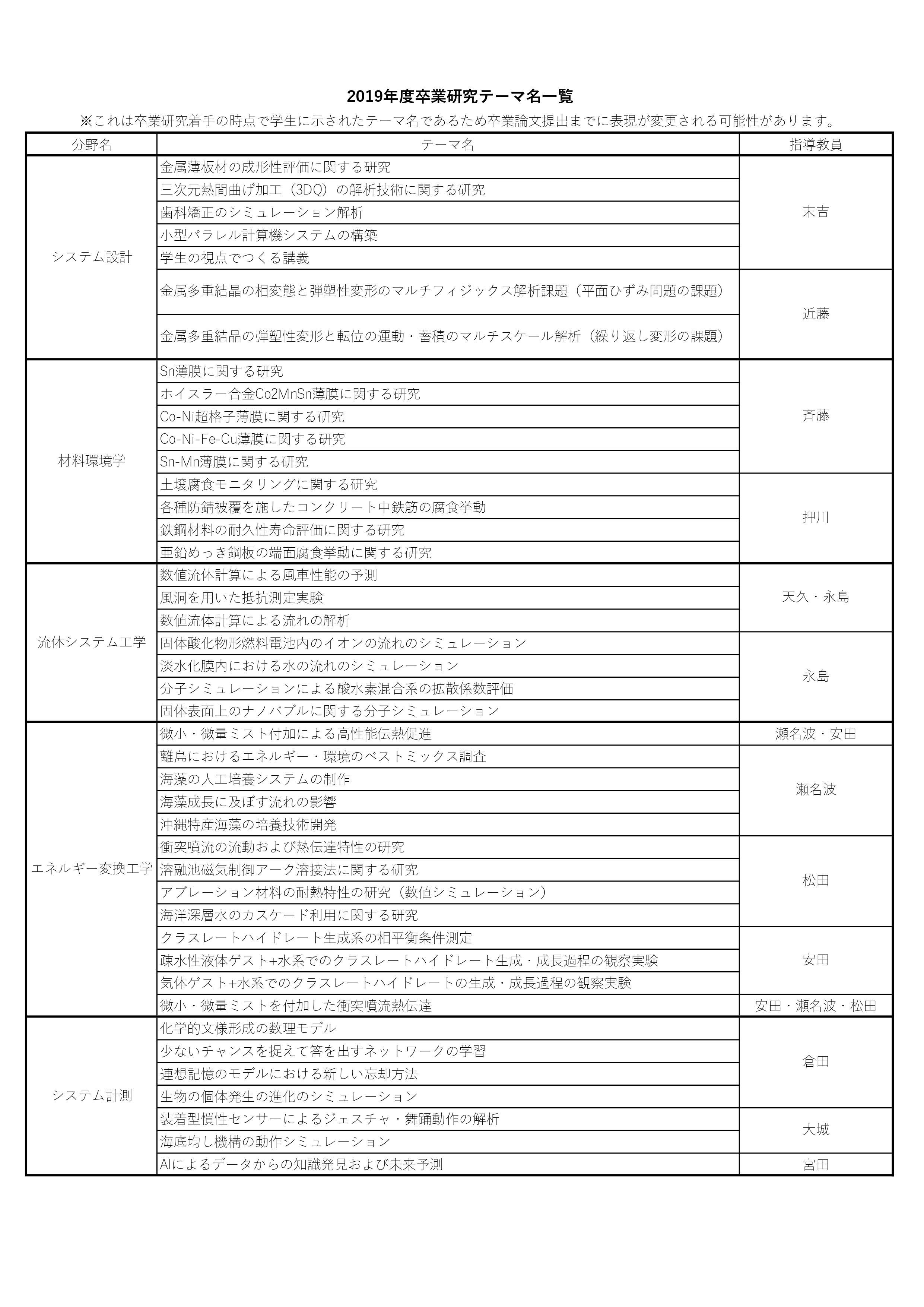 各分野の詳細